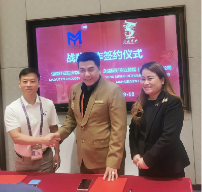 9月18日,迈越科技股份有限公司(以下简称“迈越科技”)与泰国永盛国际商业管理(曼谷)有限公司(以下简称永盛国际<曼谷>)举行战略合作签约仪式。这是迈越科技在本届东博会上签下的第一批海外订单。