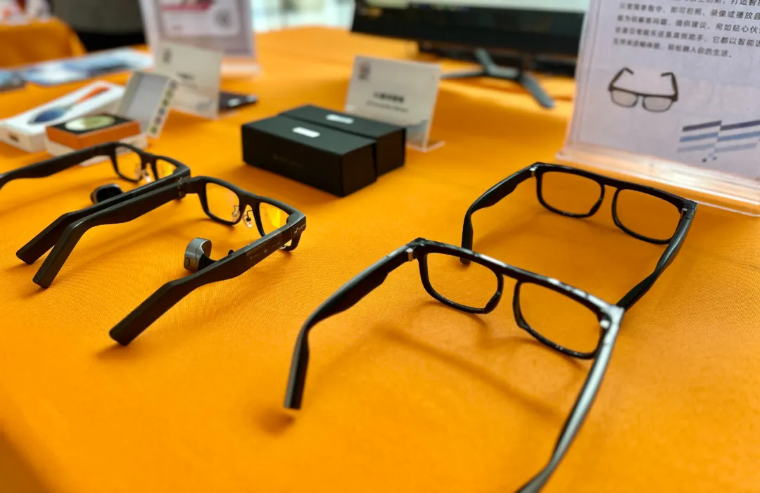 郭金龙、韦韬等与会嘉宾了解迈越科技AI翻译提词眼镜