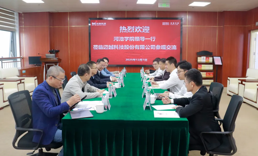 12月1日,河池学院党委书记甘毅一行莅临迈越科技开展考察交流活动,迈越科技董事长李常青,副总经理李林甫、黄有章携团队热情接待。