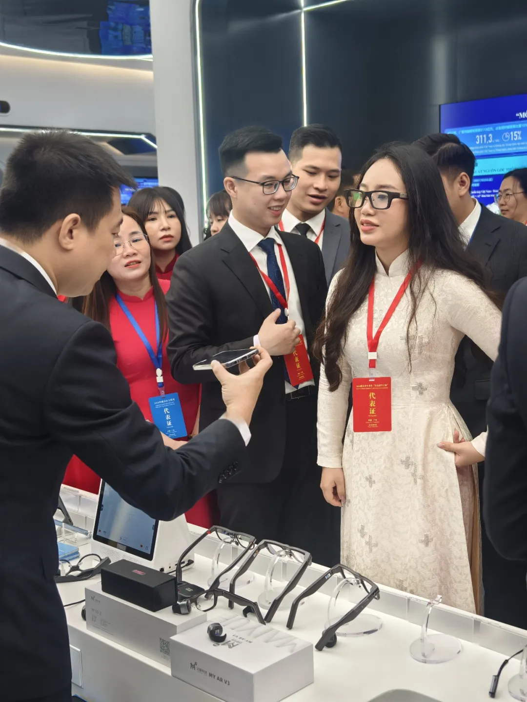 在这次高规格接待中,除表现亮眼的AI翻译提词眼镜外,迈越科技的AI智能体眼镜、AI全彩智能眼镜、双屏翻译机等系列产品也在中国—东盟国家人工智能应用合作中心集中展出,充分展现了迈越科技的前沿技术创新成果,也生动彰显了广西智造的硬核实力与国际化风采。