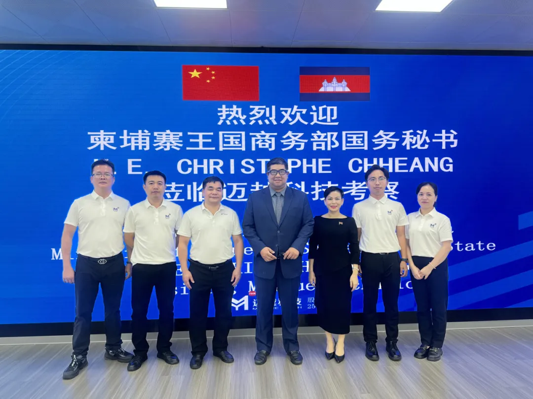 2025-09-29柬埔寨王国商务部国务秘书H.E. Christophe Chheang莅临迈越科技 共商数字出海新机遇9月27日,柬埔寨王国商务部国务秘书H.E. Christophe Chhean考察团一行,莅临迈越科技进行参观考察。迈越科技执行董事、总裁邓彩蝶,迈越科技执行董事张光柏陪同。在考察过程中,H.E. Christophe Chheang全程佩戴迈越AI翻译眼镜, 双方就人工智能技术发展、创新应用以及推动数字技术出海等议题进行了无障碍、深入的交流。H.E. Christophe Chheang佩戴迈越AI翻译眼镜,实现无障碍沟通在迈越科技展厅,考察团重点了解了迈越科技在...