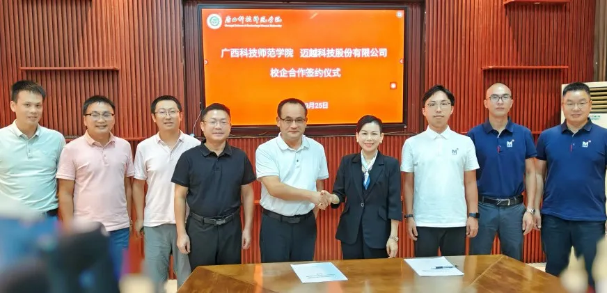 2025-09-26校企协同再升级:迈越科技与广西科技师范学院签约产教融合专业共建协议9月25日,迈越科技股份有限公司(以下简称迈越科技)与广西科技师范学院共同签署产教融合专业共建协议,双方在原有的物联网工程专业的合作基础上,新增计算机科学与技术专业联合培养项目。此次签约不仅是校企合作的延续,更是产教融合模式的升级,将为区域数字经济人才培养注入新动能。 迈越科技执行董事、总裁邓彩蝶与广西科技师范学院副校长吴建生共同出席并见证了签约仪式。校企携手共育数字人才邓彩蝶详细介绍了公司的...